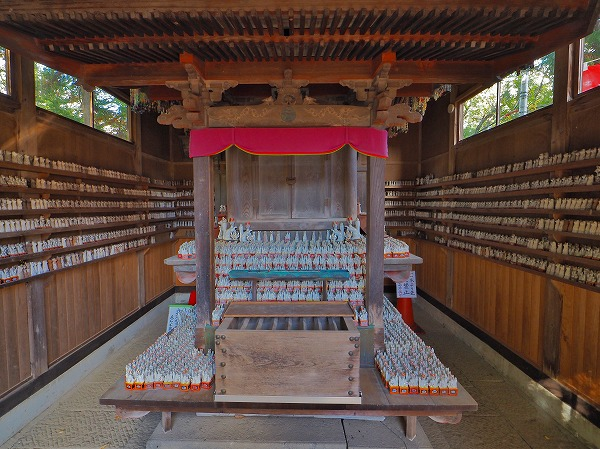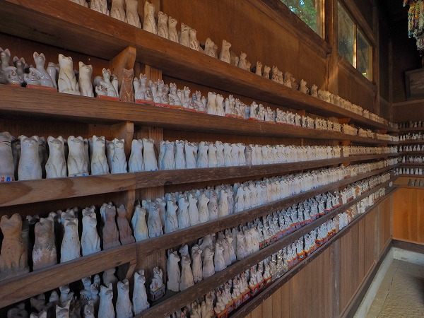 左右と後の壁面の棚に狐像がズラリと並んでいる。