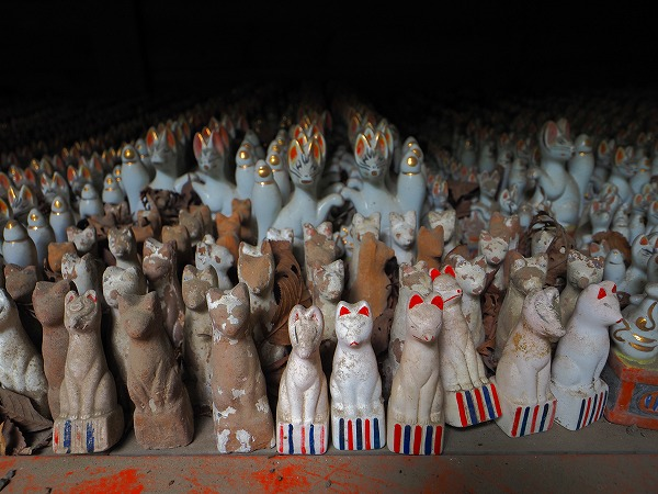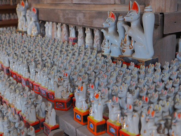小泉稲荷神社でも大量の狐像が奉納されているのを見た事があった。