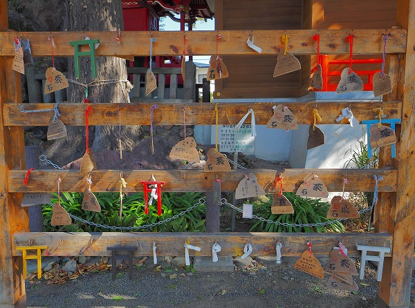 ミニ鳥居と言えば京都の伏見稲荷神社の鳥居奉納を想起する方も多いだろうが、ここの鳥居はもっと簡略化されたものである。