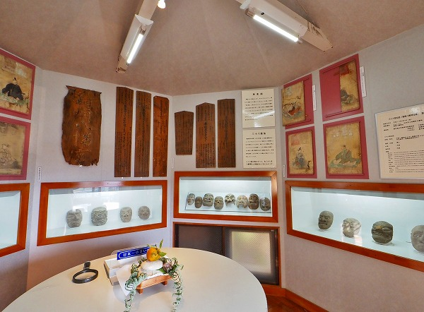 内部は案の定、円形(正確には八角形)の部屋で、この神社にまつわる宝物が展示されている。